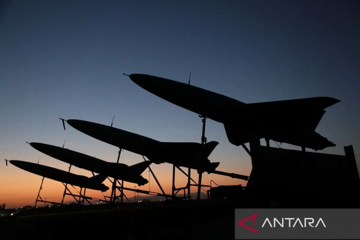 Arsip foto - Sejumlah pesawat nirawak (drone) terlihat selama latihan militer di lokasi yang dirahasiakan di Iran, dalam gambar selebaran yang diperoleh pada Rabu (24/8/2022). ANTARA/REUTERS/HO-WANA/Iran Military/aa. (Tentara Iran/WANA/HO via Reuters/as)