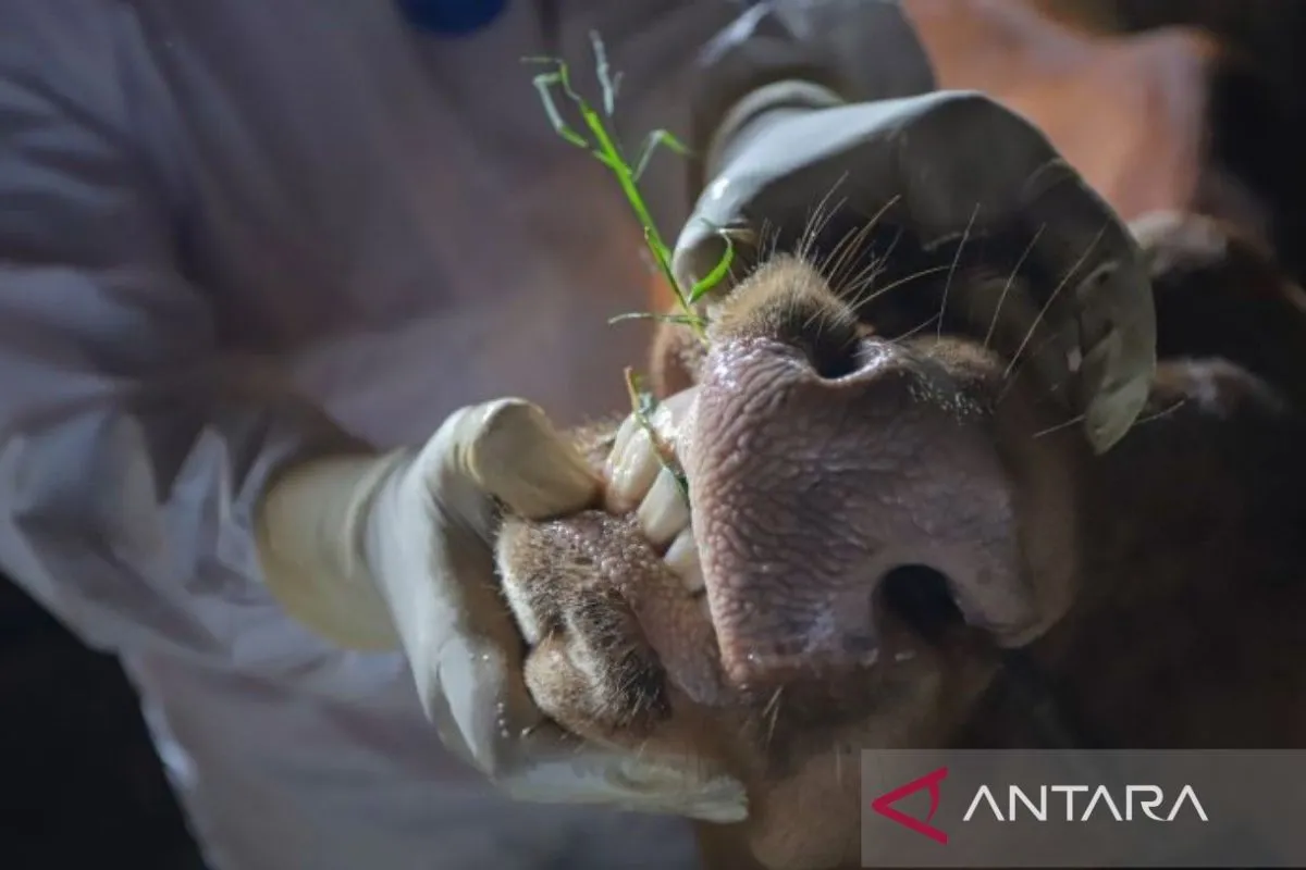 Ilustrasi - Dokter hewan dari Dinas Peternakan dan Kesehatan Hewan (Disnakeswan) Lamongan memeriksa kondisi kesehatan sapi di peternakan sapi Tikung, Lamongan, Jawa Timur, Rabu (8/1/2025). (ANTARA/Rizal Hanafi)